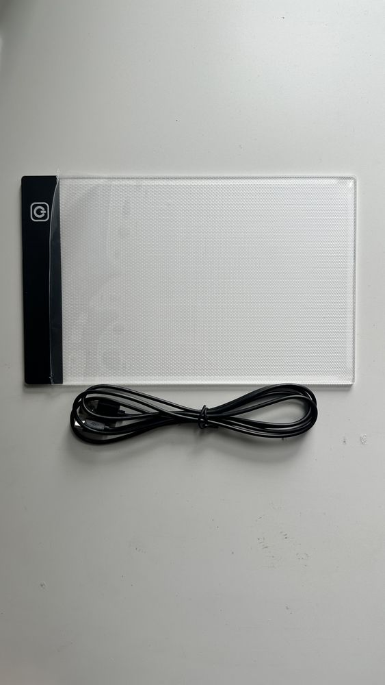 Размер А5. Три режима яркости света. В комплекте световой планшет, инструкция на английском языке, кабель с usb. Внимание! Вилка для розетки в комплект не входит, используйте пауэрбанк или любой зарядный блок от телефона с поддержкой usb